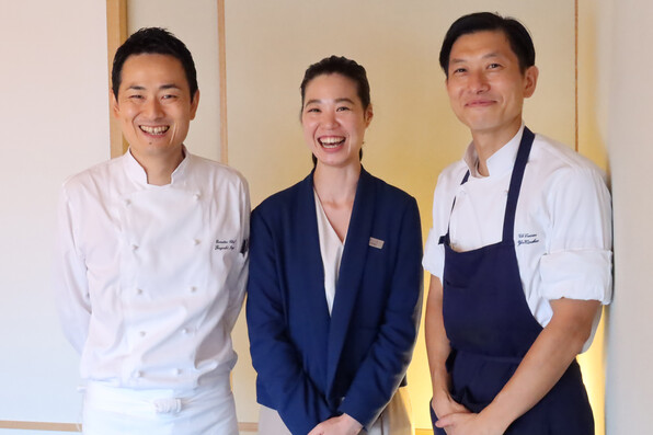 左から総料理長の井料剛さん、サーヴィスのチームリーダー三木茉以子さん、「KYOTO BISTRO」シェフ平久江裕さん、