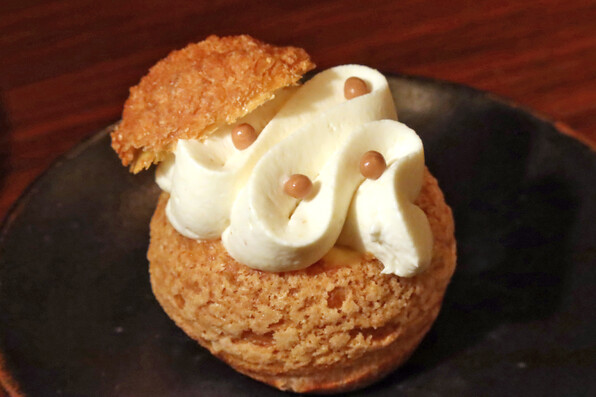 モンブランのシュークリーム。モンブランには中にも栗が入っていてうっとり美味。