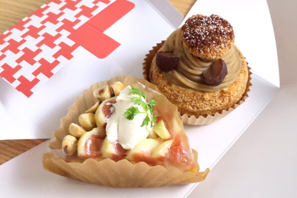 いちじくのタルトはみっちり濃いタルト台にいちじくが隙間なくのっていて、ナッツの食感とセルフイユの香りがアクセントになって粋なことです。