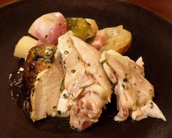 ●切り分けていただいたのがこちら。鶏肉ならではの旨味たっぷりながら、優美な舌ざわりを楽しみました。ああもうおいしかった(^o^)☆☆☆