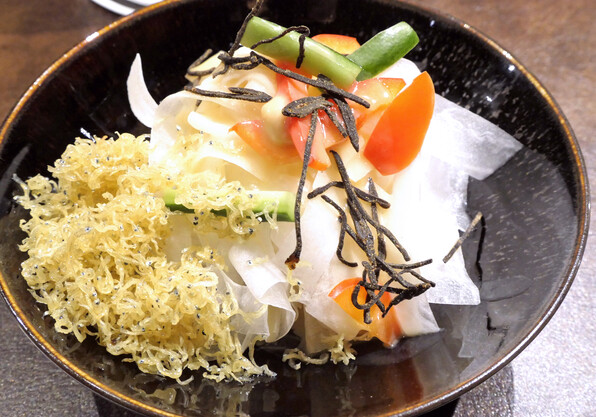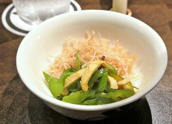 ●万願寺とうがらしとこりこり。とろろするめ(いかとすり身の揚げもの)