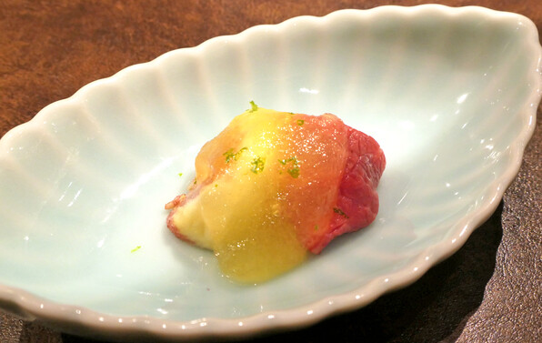 雲丹と肉で「うにく」の手巻きなど、「富小路 やま岸」「二条 やま岸」に通っている人なら、「ここでもこれが(^o^)/~」となつかしくうれしい一品です(^o^)☆☆☆