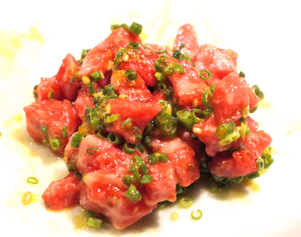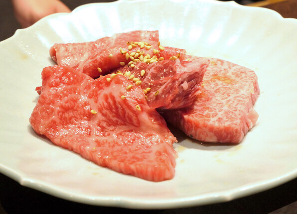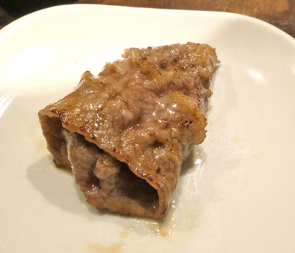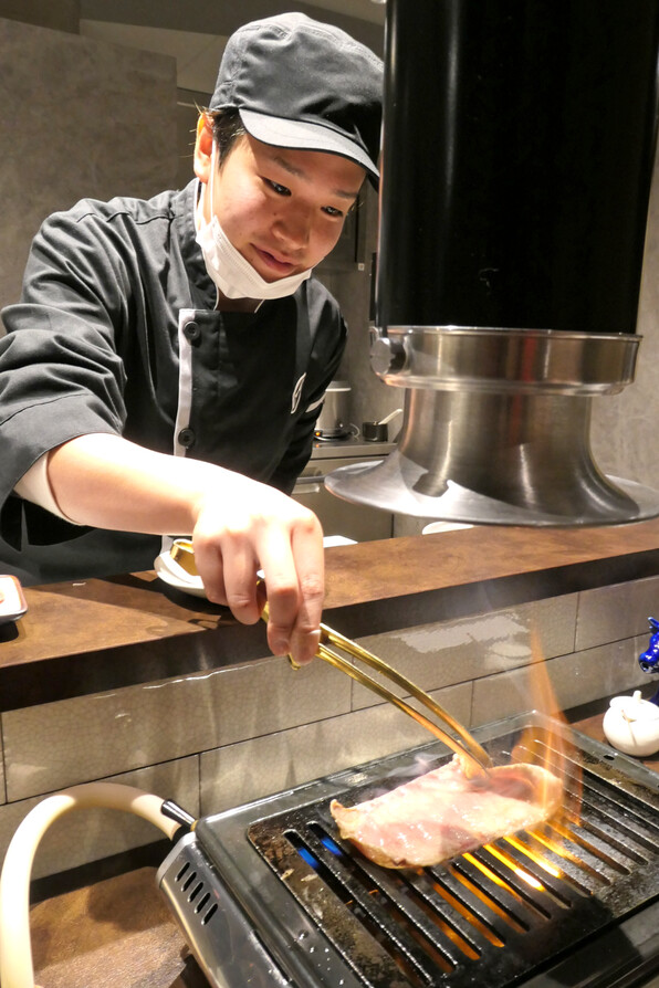 肉を焼いてくれるのは店主の山岸隆二さんのご子息の嗣苑(しおん)さん。21歳。大学で学びつつ夜はこちらで修業中とのこと。お父さん似で優しくて感じがいいのだなあ。若いのに如才なくお客さまの対応できてすばらしい(^o^)