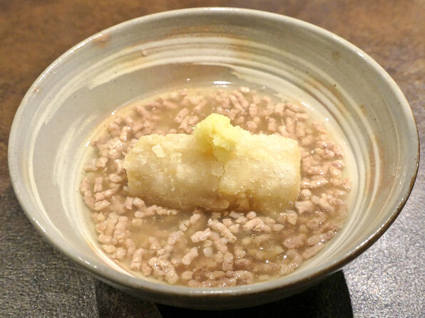 割烹が焼肉屋さんをやるとこうなるのだな、、サーロインときくらげのしゃぶしゃぶ仕立てなどおだしは一流の料理屋さんの風味、全飲みせずにはいられません。海老芋のからあげに肉そぼろあんも、あんまで全部すくって味わいました。