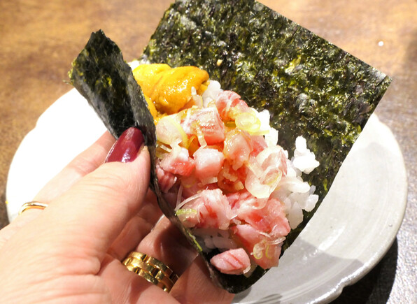 ●雲丹と肉で「うにく」の手巻き、牛トロ。