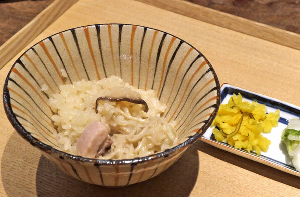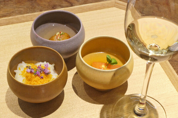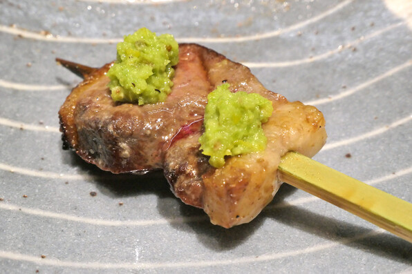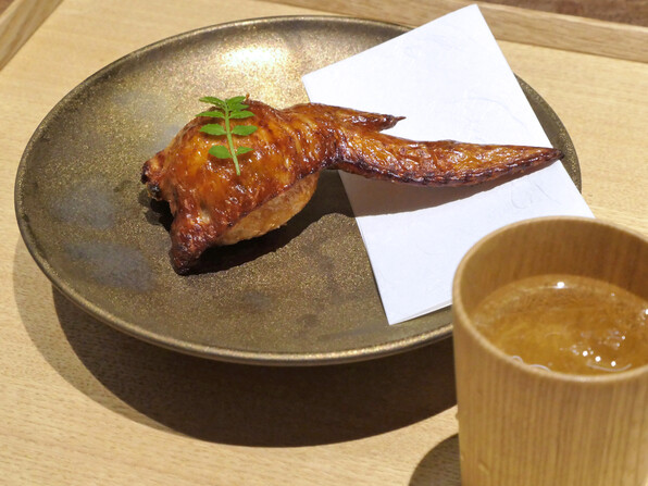 ●今回は京都焼き鳥styleコース という新コースが先週後半から始まったということで、そのコースを、ソムリエで店長補佐でもある中谷 洲さん厳選のペアリングコース(料理に合わせてワインを中心に8種類)と共にいただいてみました。