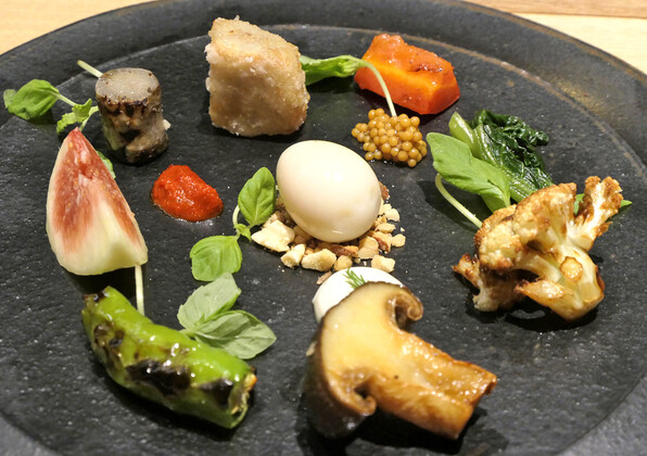●野菜もとびきりおいしい。前回のいちじくに換わって、今回は梨のコンポートが使われていました。