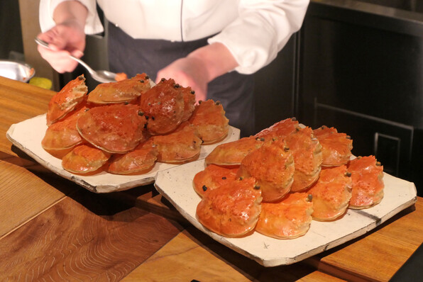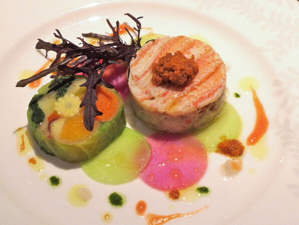 ●セルクル型でみっちりまとめた。蟹の身と卵のかたまり。