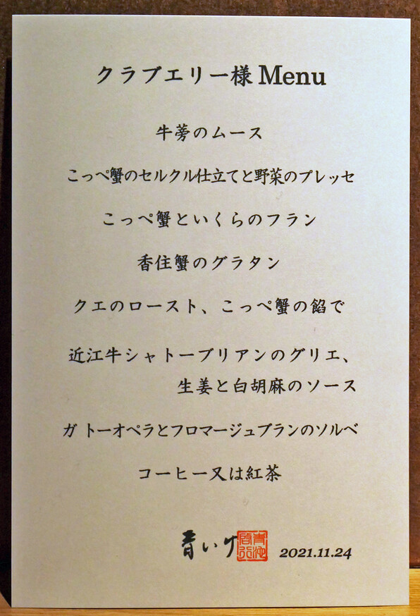 蟹蟹蟹の4皿を織り込んだ贅沢なコースありがとうございました<(_ _)>