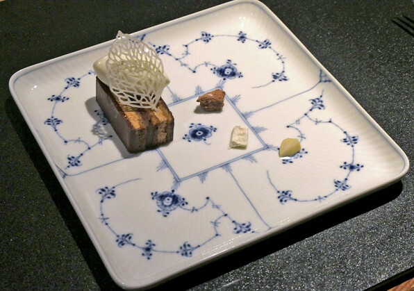 ●デセールはオペラに、フロマージュブランのソルベ、その上に葉っぱや蝶のモチーフ。