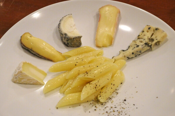 ●ペンネを茹でてもらって、それでフォルマッジ5種類を味わうことにしました。
