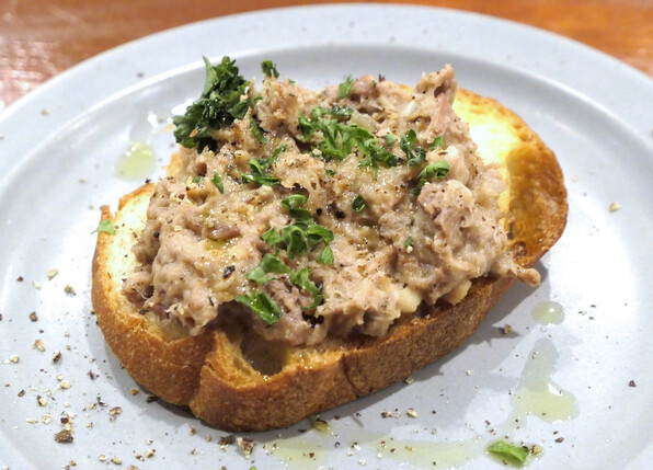 ●次のお皿を待つ間、ブルスケッタを出してくれました。パリパリのバゲットに、リエットがたっぷりと\(^o^)/