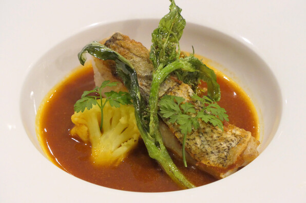 真鱈のソテ、旨味たっぷりの魚スープがひたひたと。