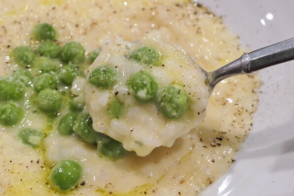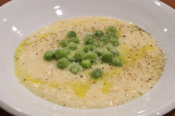 ●リゾット、新玉ねぎたっぷりのがおすすめということで、甘い甘い新玉ねぎと聞いて、即それに。