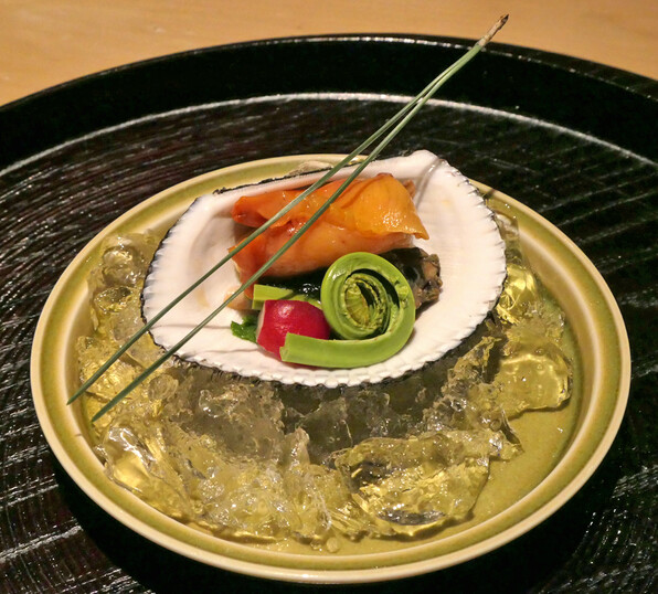 この赤貝、弾力あり風味よく、海苔ジュレがほんとーにおいしかった(^o^)☆☆☆