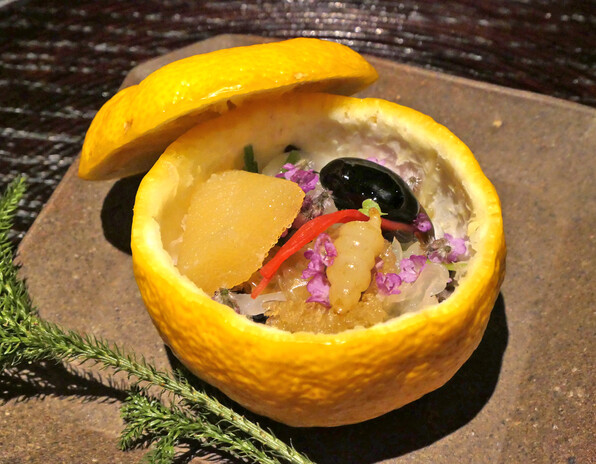 はっさくスープとして出てきました。温製。シナモン、クローヴ、八角の香りが立ちのぼり、スパイス好きにはたまりません。お料理と同様に強い印象を残しました。これもまたしてください<(_ _)><(_ _)>