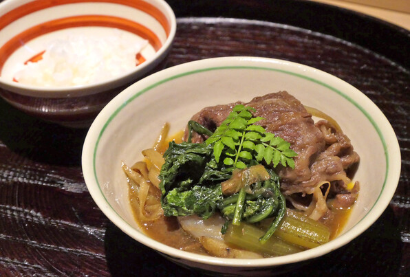 和牛(平井牛)、玉ねぎ、ふき、ごぼう、春菊。