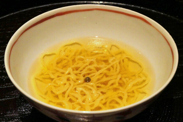 ●最後に澄んだスープの麺を少し。カリマンタン島の生胡椒がひと粒あしらわれ、これがいいアクセントです。