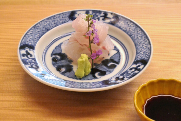 ●お造りはひらめ。優美な舌ざわり、上品な、それでいてこくのあるおいしさ。