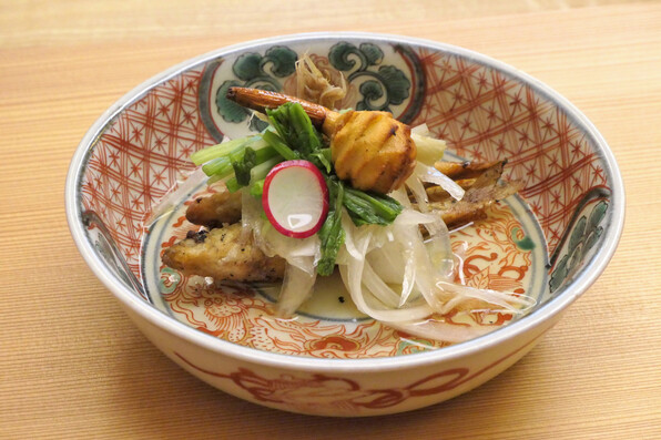 細かくばらされたのどぐろ天ぷらがご飯に混ぜ込まれていて、さくっとした口当たりで旨味強く塩気も効いて、これ本当に名作だと思います。