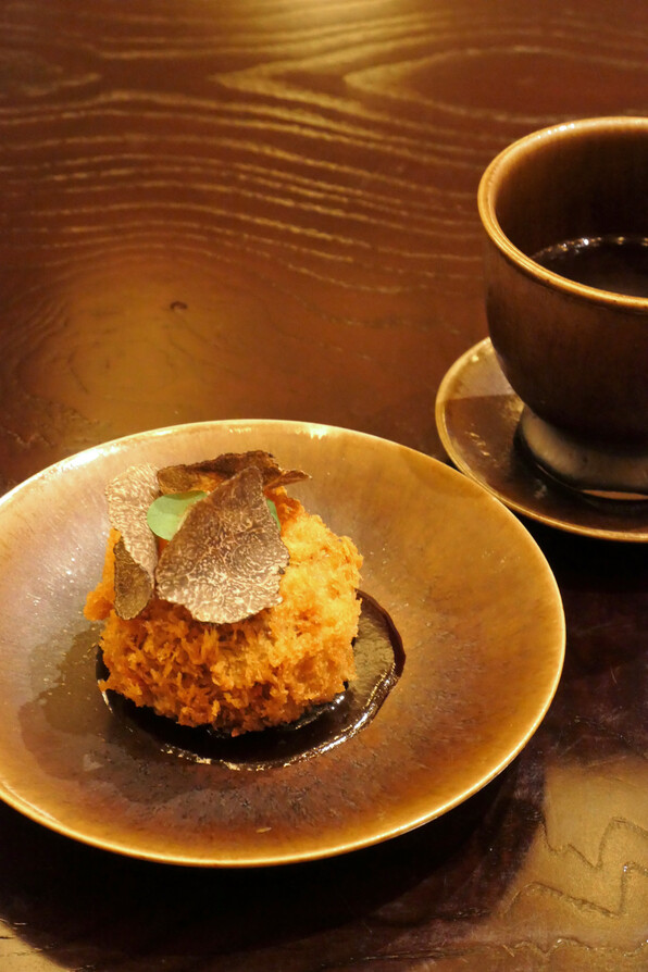 ●コース仕立て、5皿の中でもとりわけ印象に残ったのはこの近江牛のクロケット。