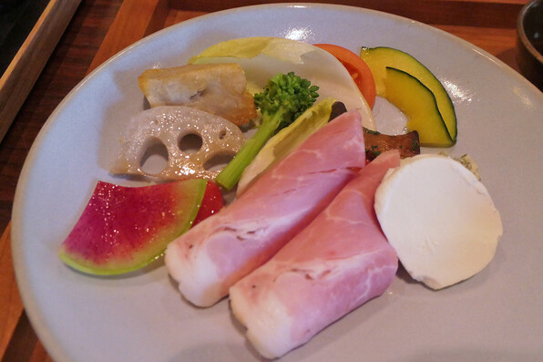 ●ハムはジャンボンブランか生ハム、あるいはスモークサーモンが選べて、