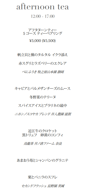 ●「ザ リビングルーム」のひと皿ごと供されるアフタヌーンティ、冬のメニューはこんなでした。