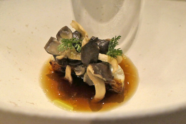 ●くえと平茸、5種類のきのこのコンソメ。