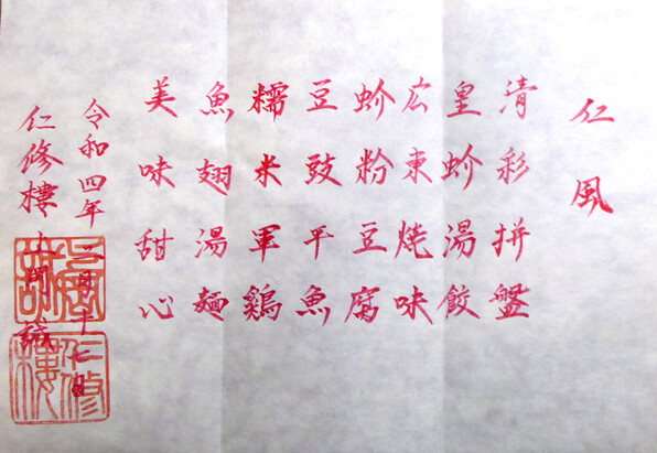 「仁修樓(にんしゅうろう)」さん、3月また楽しみに伺います。