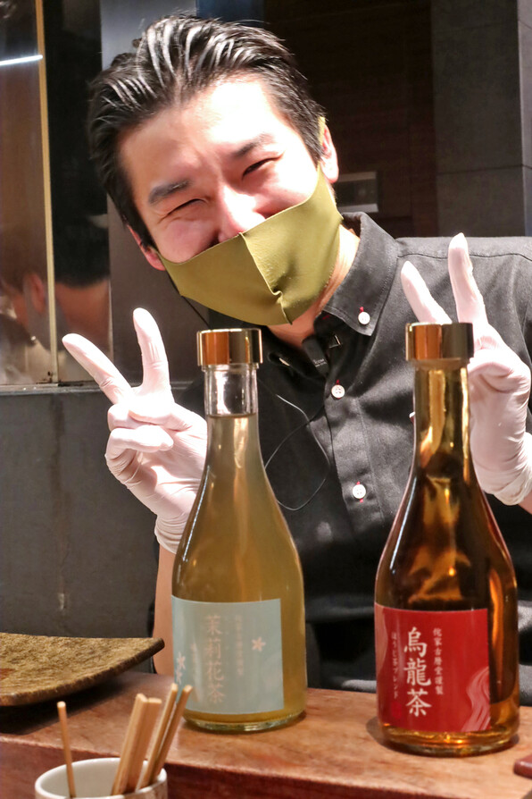 「侘家古暦堂」さん特製の烏龍茶と茉莉花茶をプレゼンしてくれています。