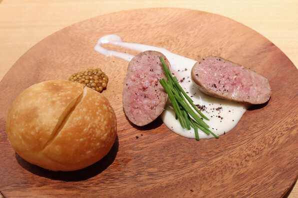 ●京鴨のソーセージ、パンは「HANAKAGO」さん。