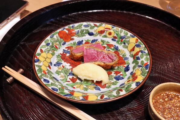 ●初登場の牛カツ\(^o^)/ 自家製ウスターソース、じゃがいものピュレ、辛子