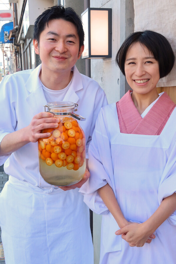 ●「日本料理 研野」、研野さんと愛ちゃんありがとう。研野さんは漬け込み中の金柑の瓶を手に持って季節感を出してくれました。愛嬌のある人です(^o^)♪