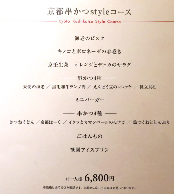 ●新しい 京都串かつ styleコース です。