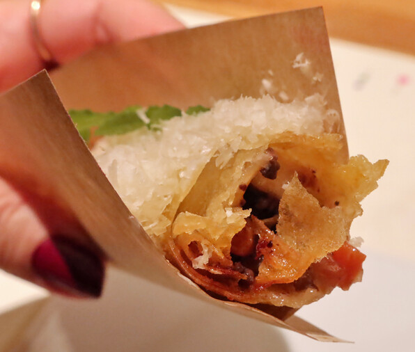 ●きのことボロネーゼの春巻きです。これパリパリと食感心地よく、実においしかった\(^o^)/