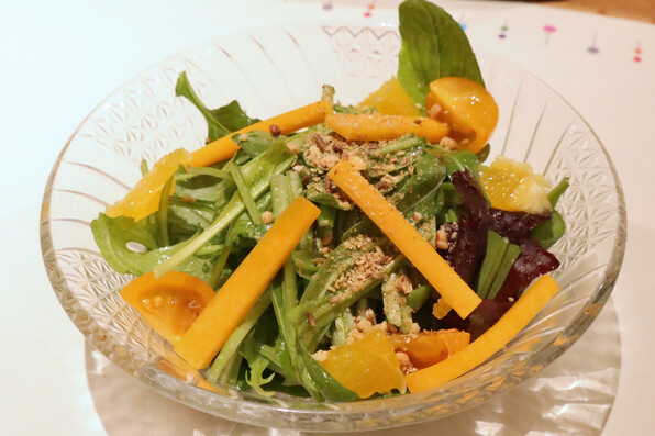 ●壬生菜たっぷり、オレンジ風味鮮烈、デュカでスパイシーなサラダ。