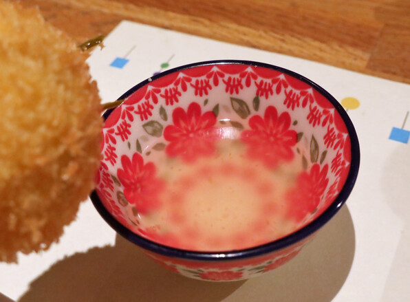 スープのクルトン代わりに添えられたのが・・・パン粉を、カリカリさらさらにしたもので、これよかった(^o^) 串かつ屋さんらしいと思わせたのでした。
