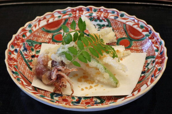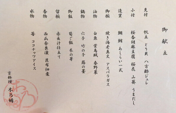 アスパラガスに筍、ほたるいかに白魚、桜の香りの胡麻豆腐も楽しかったです。