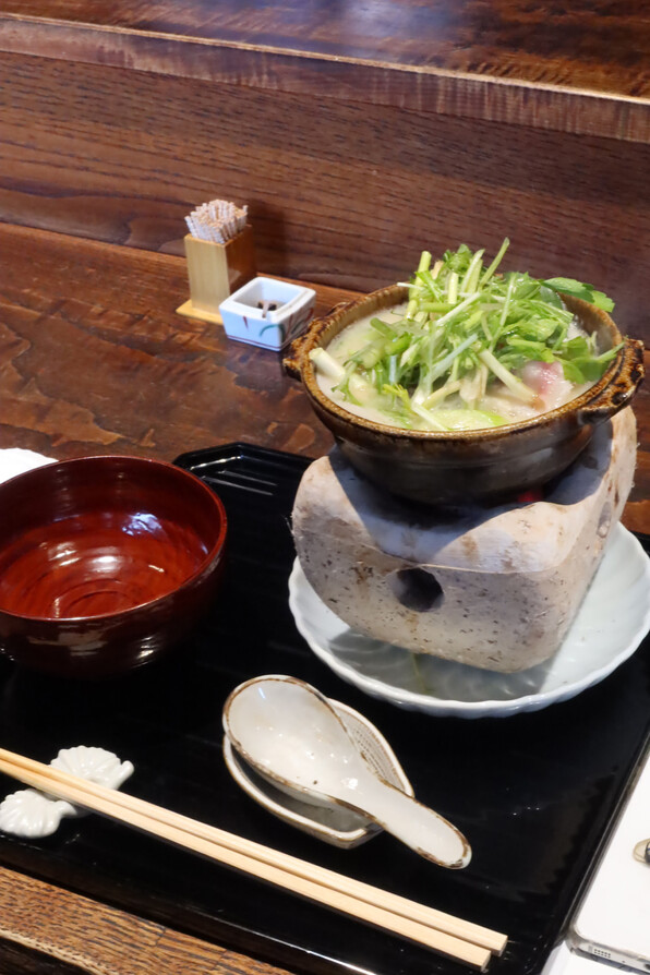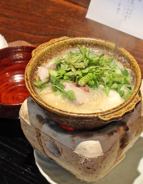 ●いのしし鍋の粕汁仕立てです。芹をたっぷりと。