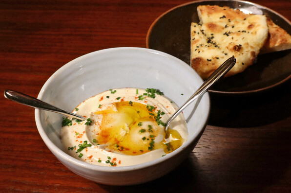 ●前菜に、名物豆腐フムス&ピタパン。これやみつき旨いやつ。やば旨いというやつ(^o^)