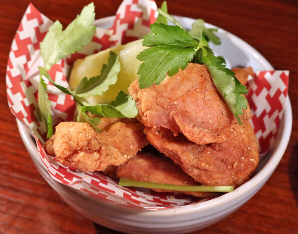 外側クリスピーで、塩気ほどよく少しスパイシー、中は柔らか、鶏の旨味たっぷりでやみつき止まらなーい。