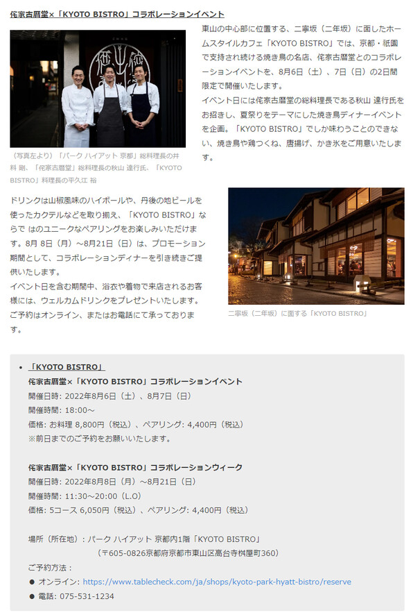 パーク ハイアット 京都「KYOTO BISTRO」で、