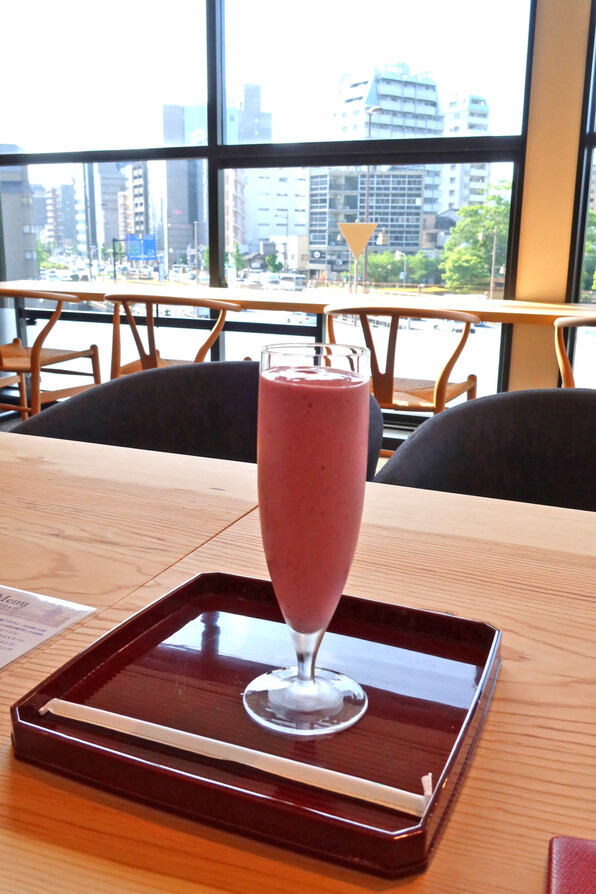 ●豆乳スムージーをいただきました。いちごの風味豊か、とろりとなめらかで、いかにも身体にいい感じでした。