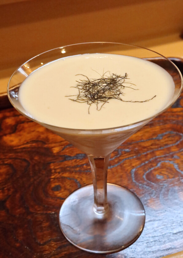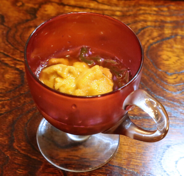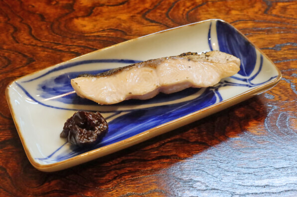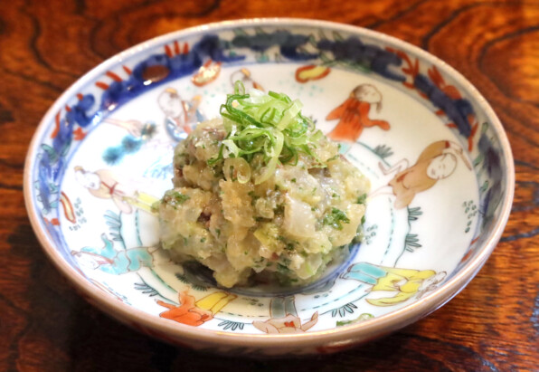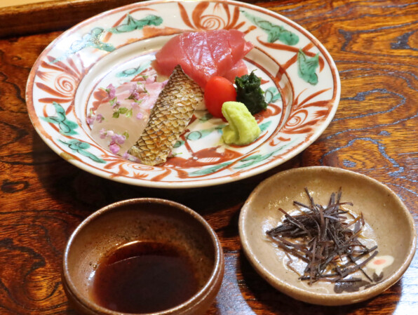 ●「千ひろ」さんではお造りを塩昆布で味わいます。鯛とまぐろ。