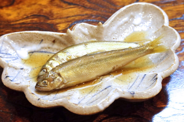 お皿は先々代の清水六兵衛さんの鮎皿ということ。
