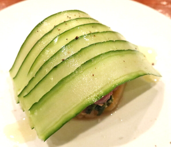 きゅうりスライスが上にのった構築サラダは・・・