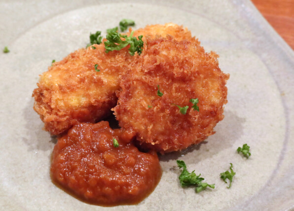 ●燻製帆立のフライ、とうもろこしのフライ。