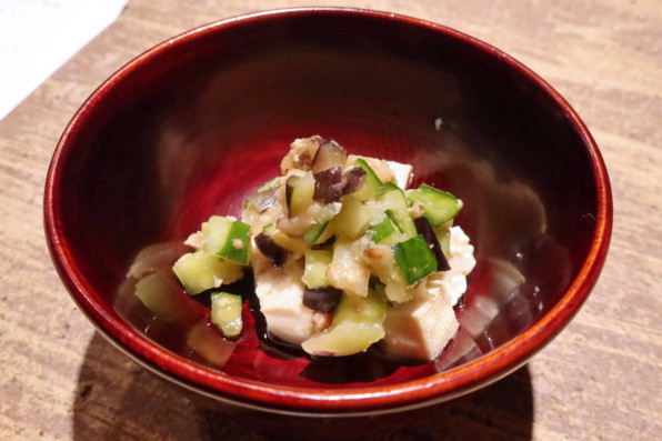 きゅうりと茄子、塩麹漬けです。木綿豆腐のアンチョヴィマリネと。
