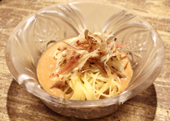 ●カペッリーニ、鰯のスープ 胡麻と茗荷