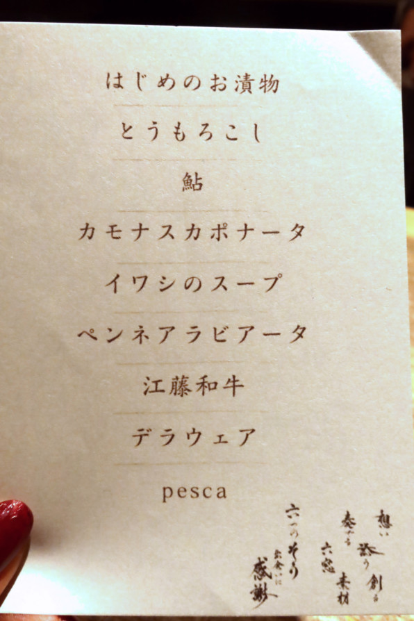 コースのみのお店です。以下、夜の軽い方のコースです。